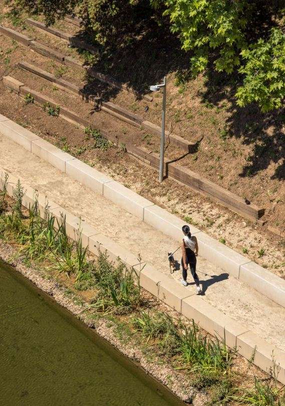 Over the years, this situation, combined with the difficulty involved in managing an infrastructure that is shared between four municipalities, created a depressed, deteriorated area, which was subject to frequent flooding that made the area impassable. The project assumes that the area is subject to flooding and includes a new terraced perimeter to overcome this uncertainty, while ensuring access to the area and enjoyment of it. The resulting topography, laid out in platforms, creates areas for observation and seating. It also includes a new strip of aquatic vegetation that fosters biodiversity, highlighting the availability of this water resource for new uses.