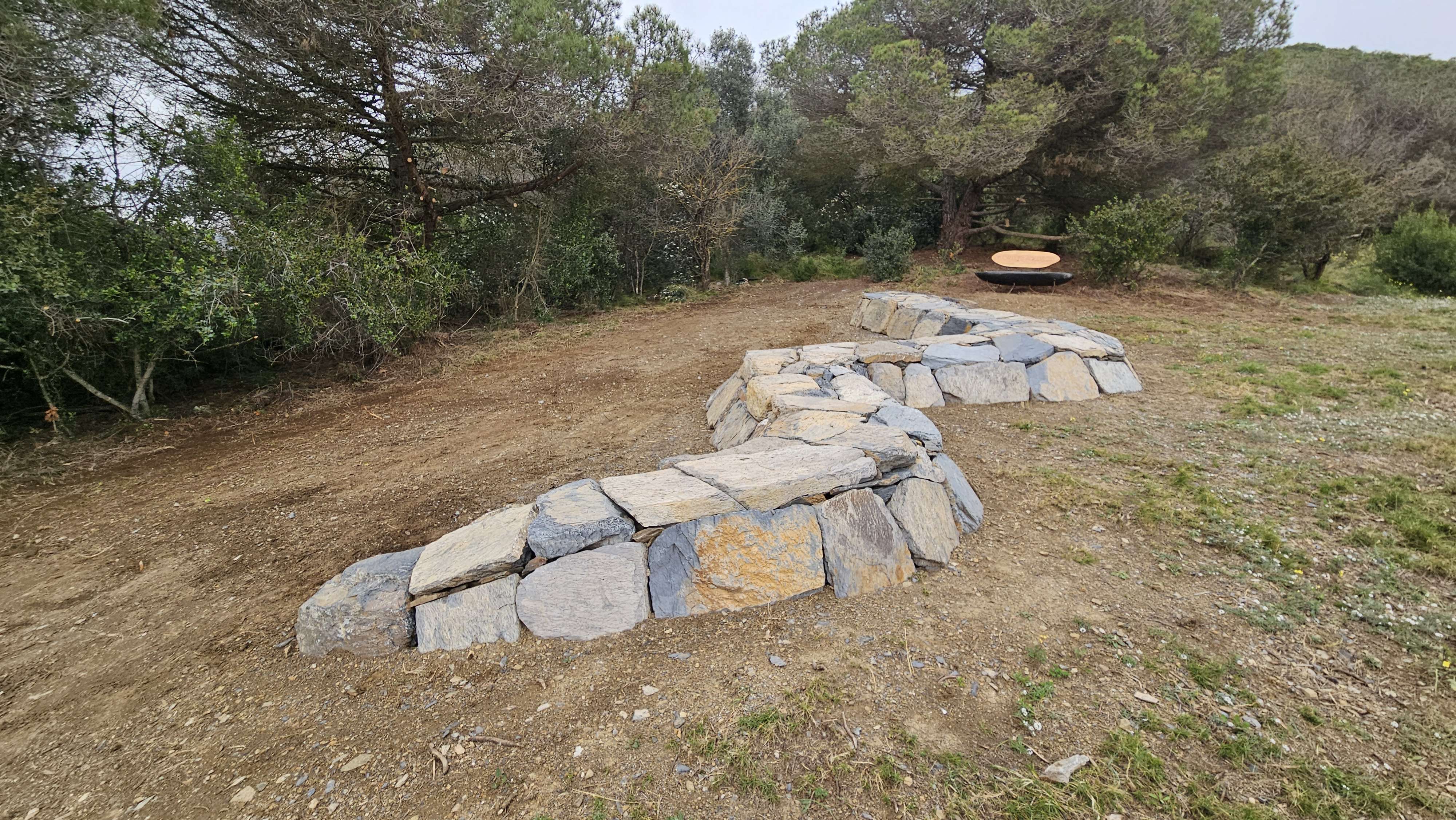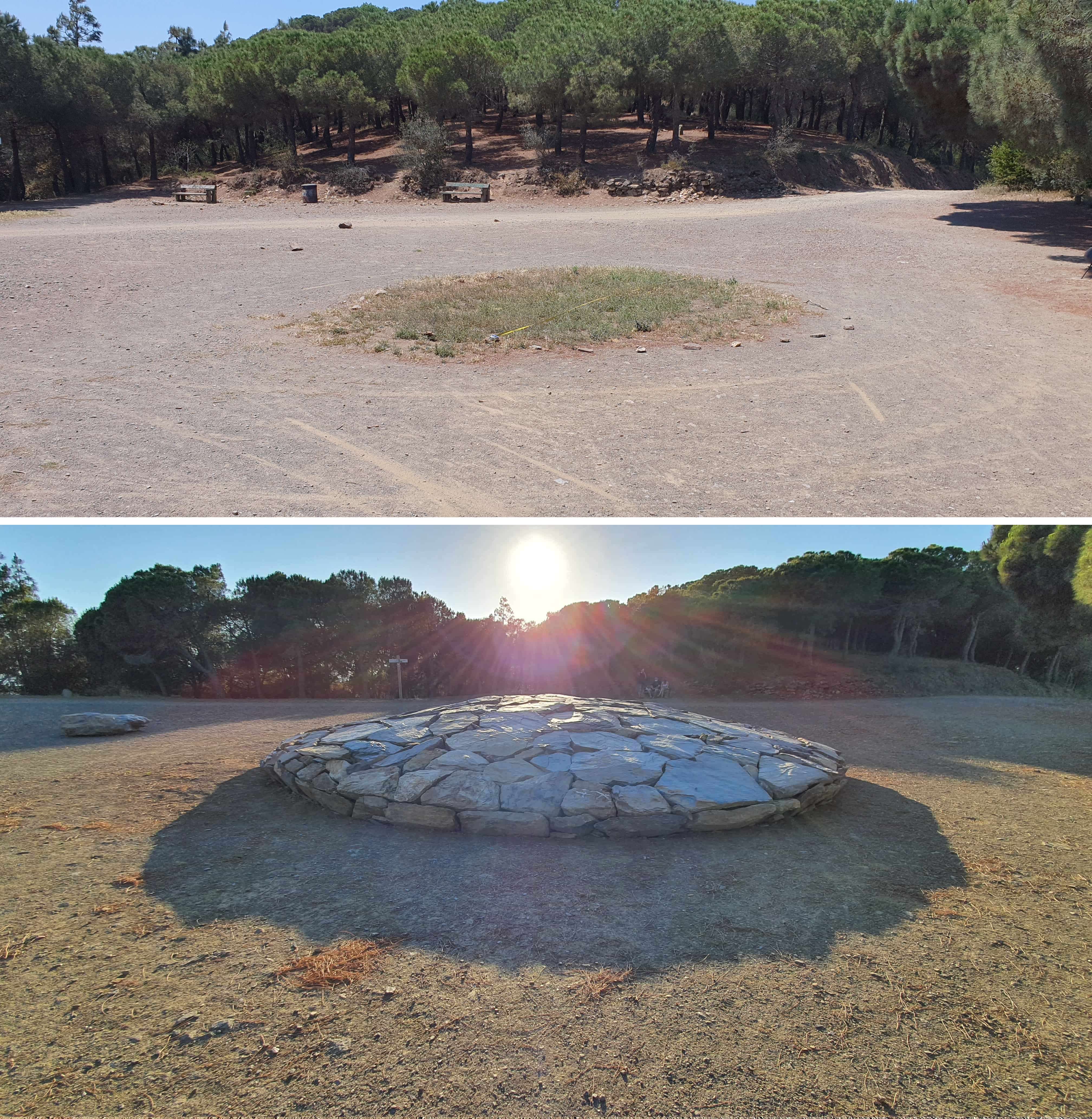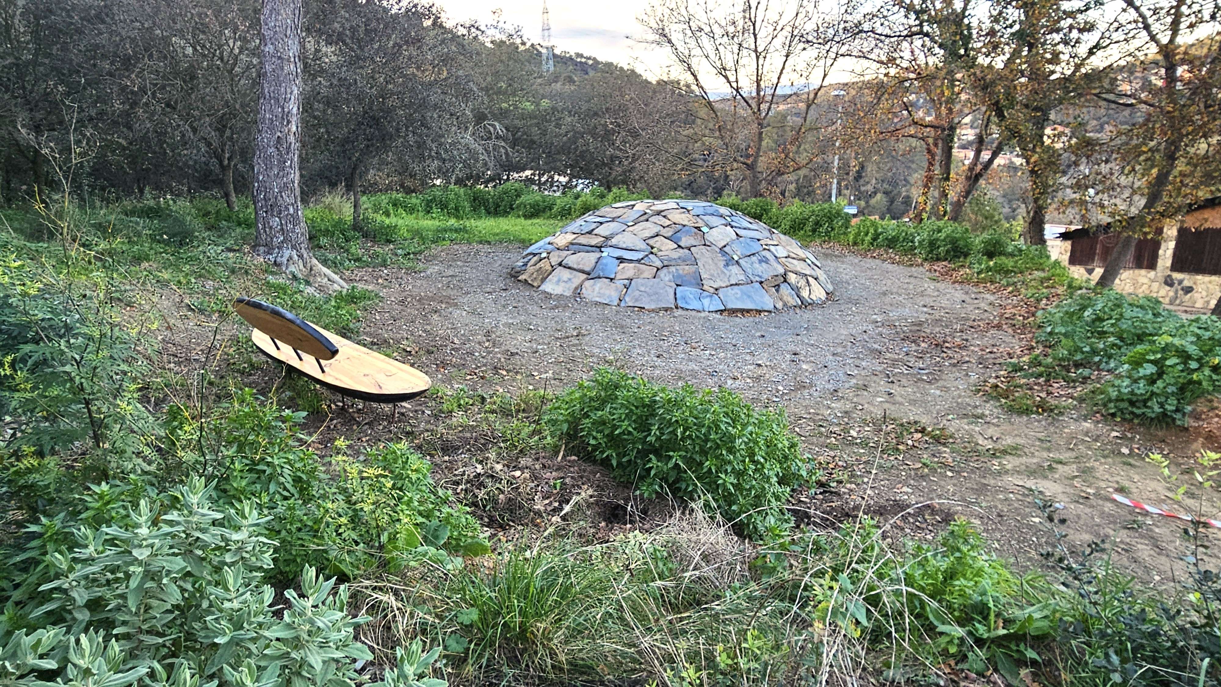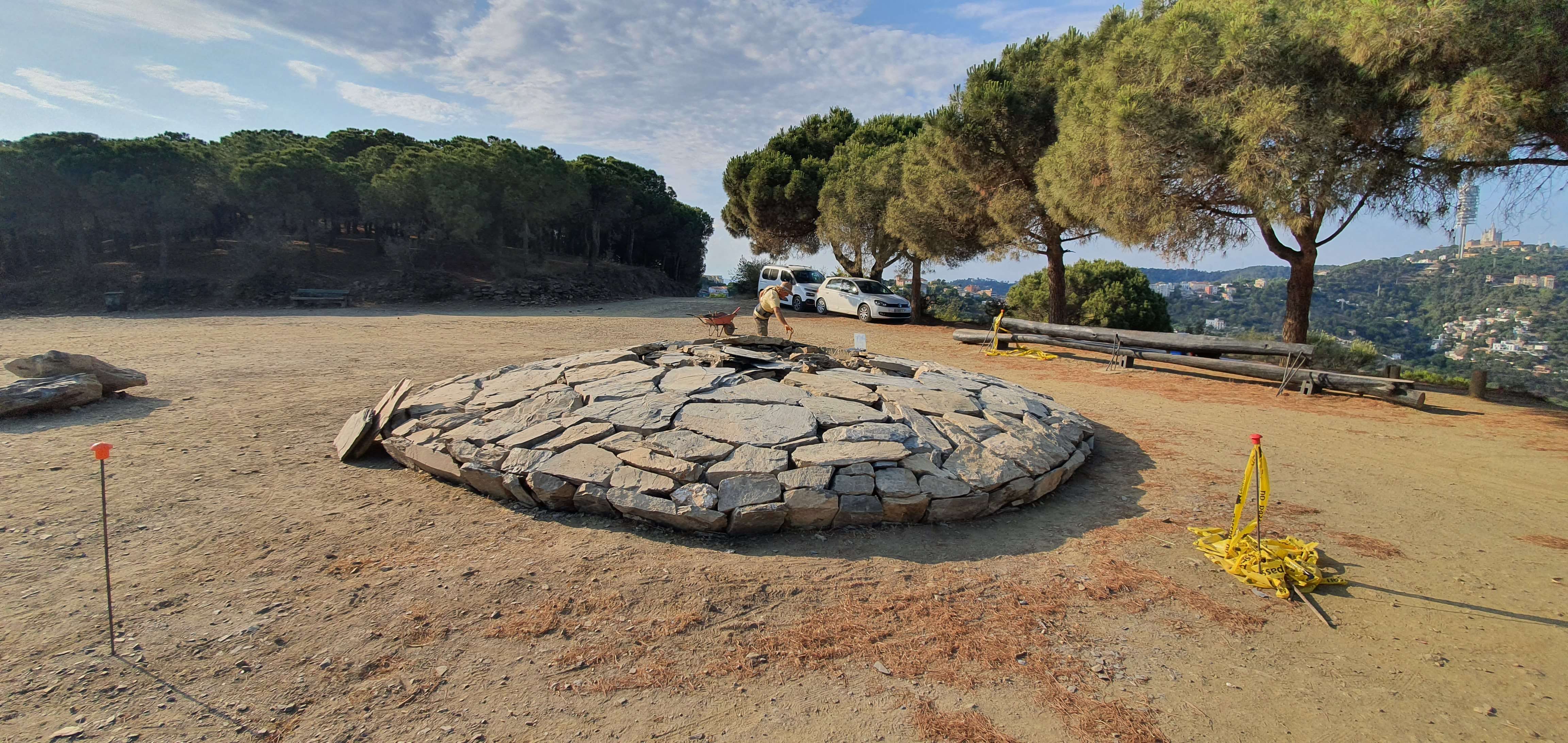 El material utilitzat per a les instal·lacions, la pedra llicorella característica de Collserola, s'integra de manera natural en el paisatge. La tècnica de la pedra en sec, aplicada tant com a recurs constructiu com a element cultural, enllaça profundament amb la història i la identitat del territori, aportant coherència i respecte al conjunt. El projecte inclou un itinerari que convida els visitants a descobrir els valors naturals, culturals i paisatgístics de la zona, transformant Collserola en un circuit d'art a l'aire lliure.