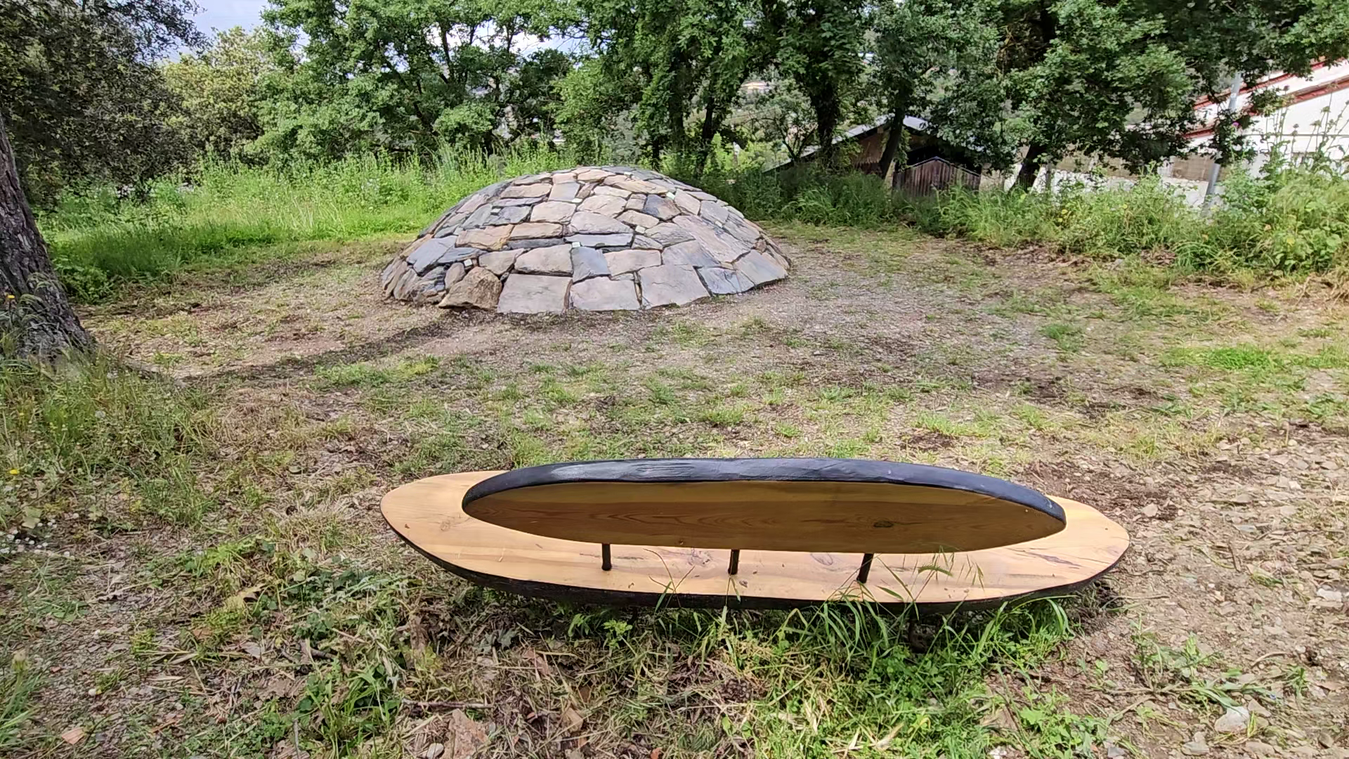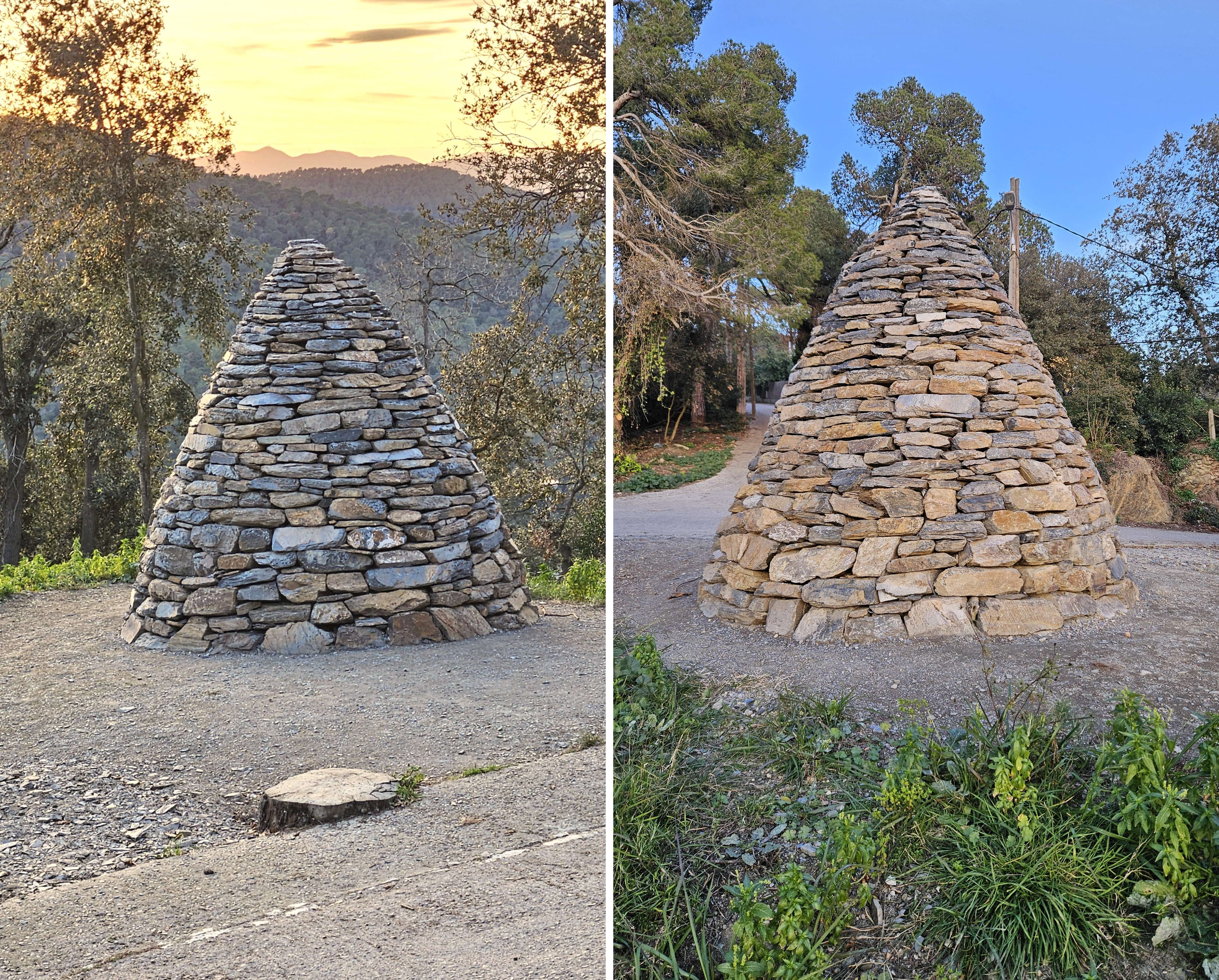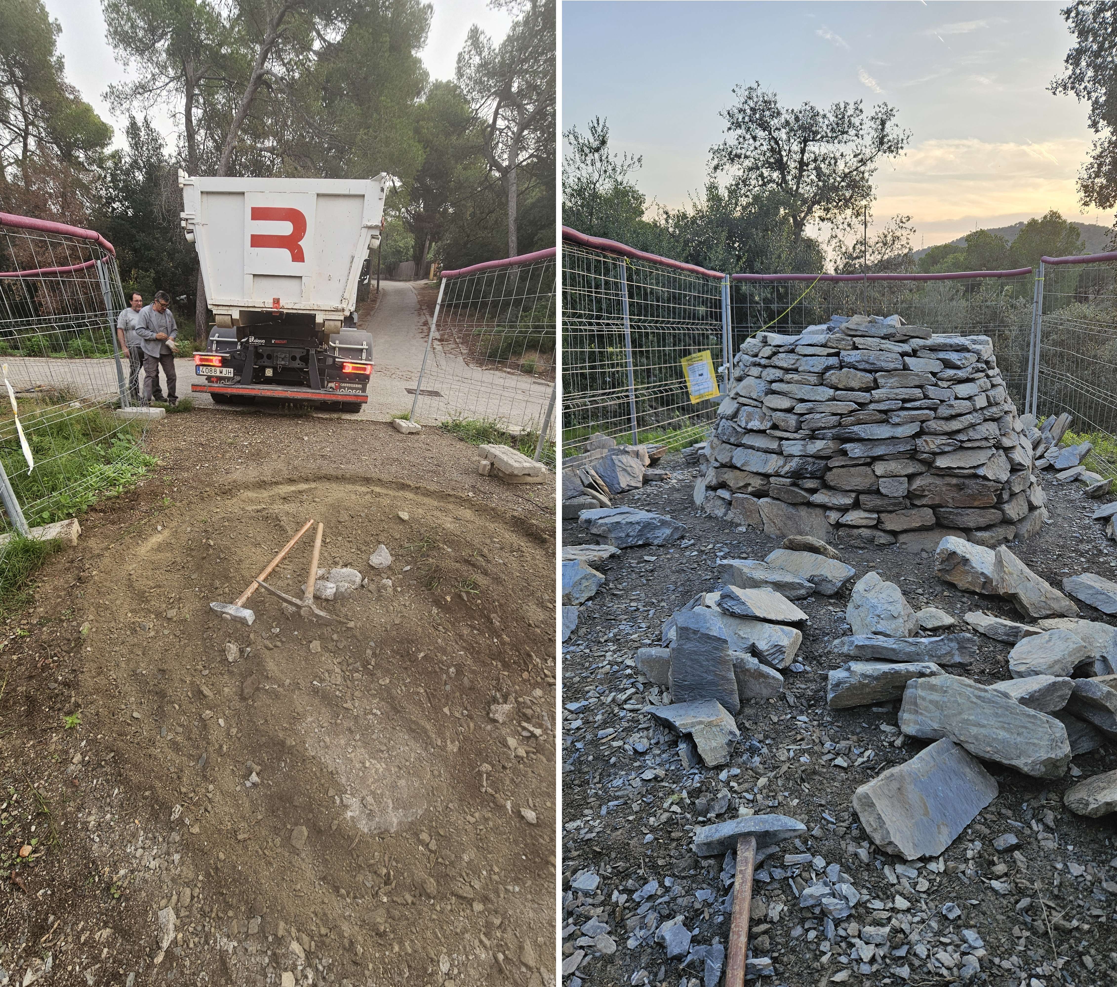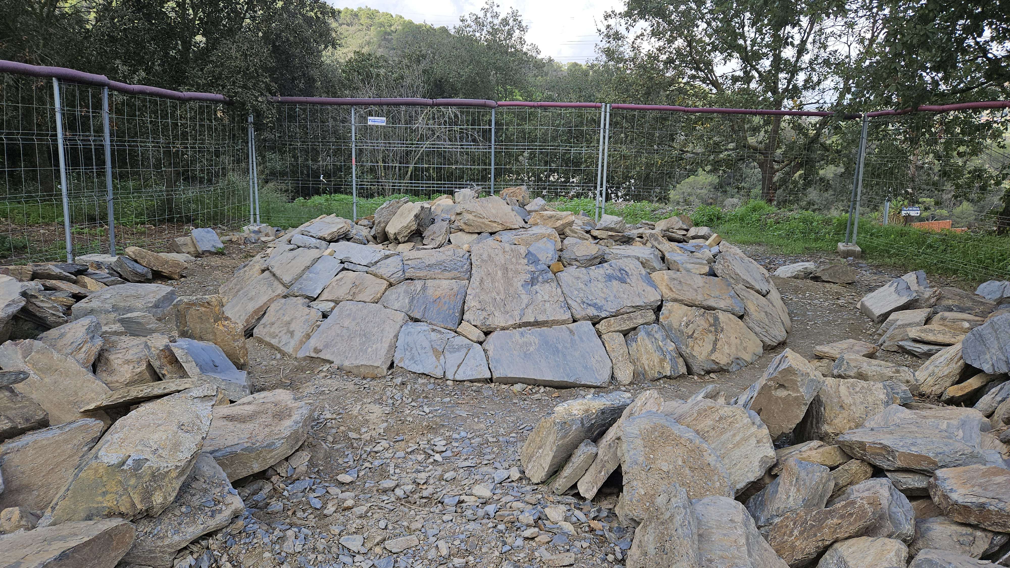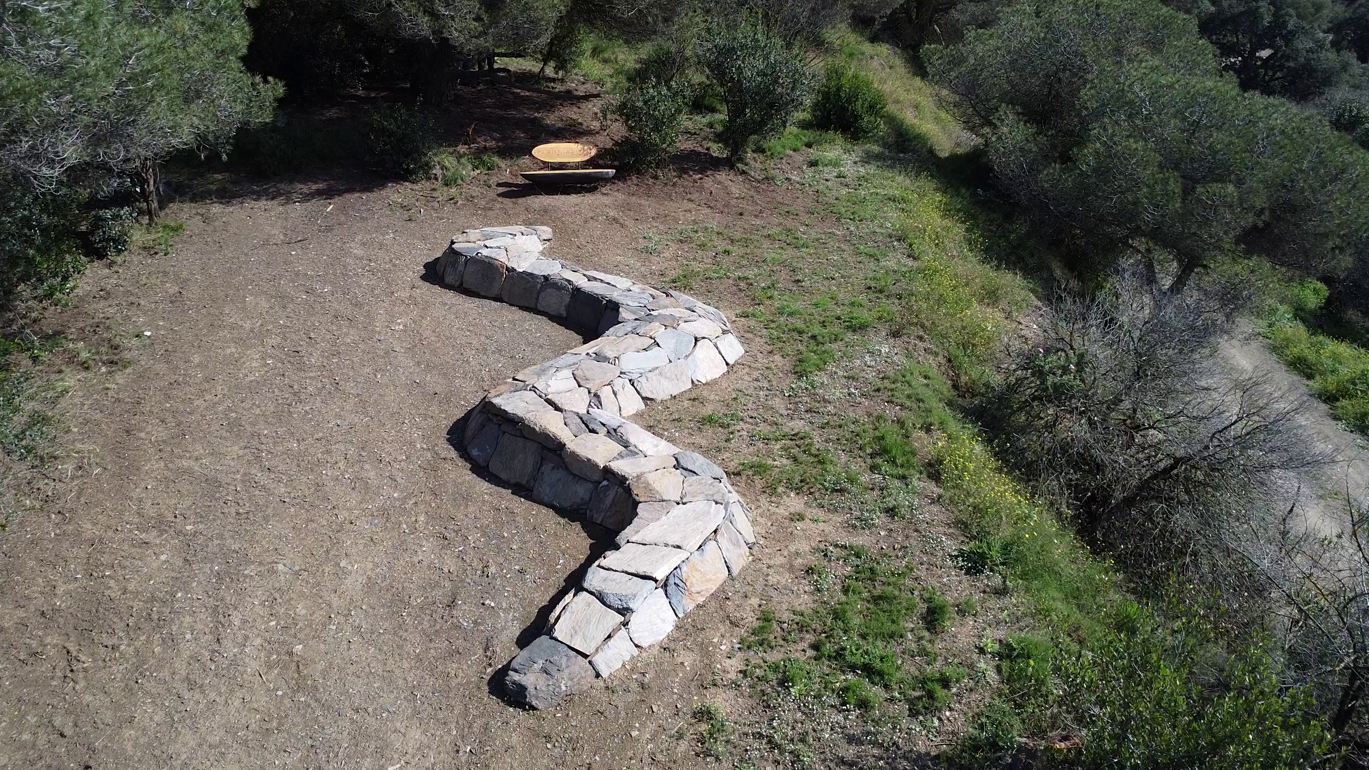 El material utilitzat per a les instal·lacions, la pedra llicorella característica de Collserola, s'integra de manera natural en el paisatge. La tècnica de la pedra en sec, aplicada tant com a recurs constructiu com a element cultural, enllaça profundament amb la història i la identitat del territori, aportant coherència i respecte al conjunt. El projecte inclou un itinerari que convida els visitants a descobrir els valors naturals, culturals i paisatgístics de la zona, transformant Collserola en un circuit d'art a l'aire lliure.