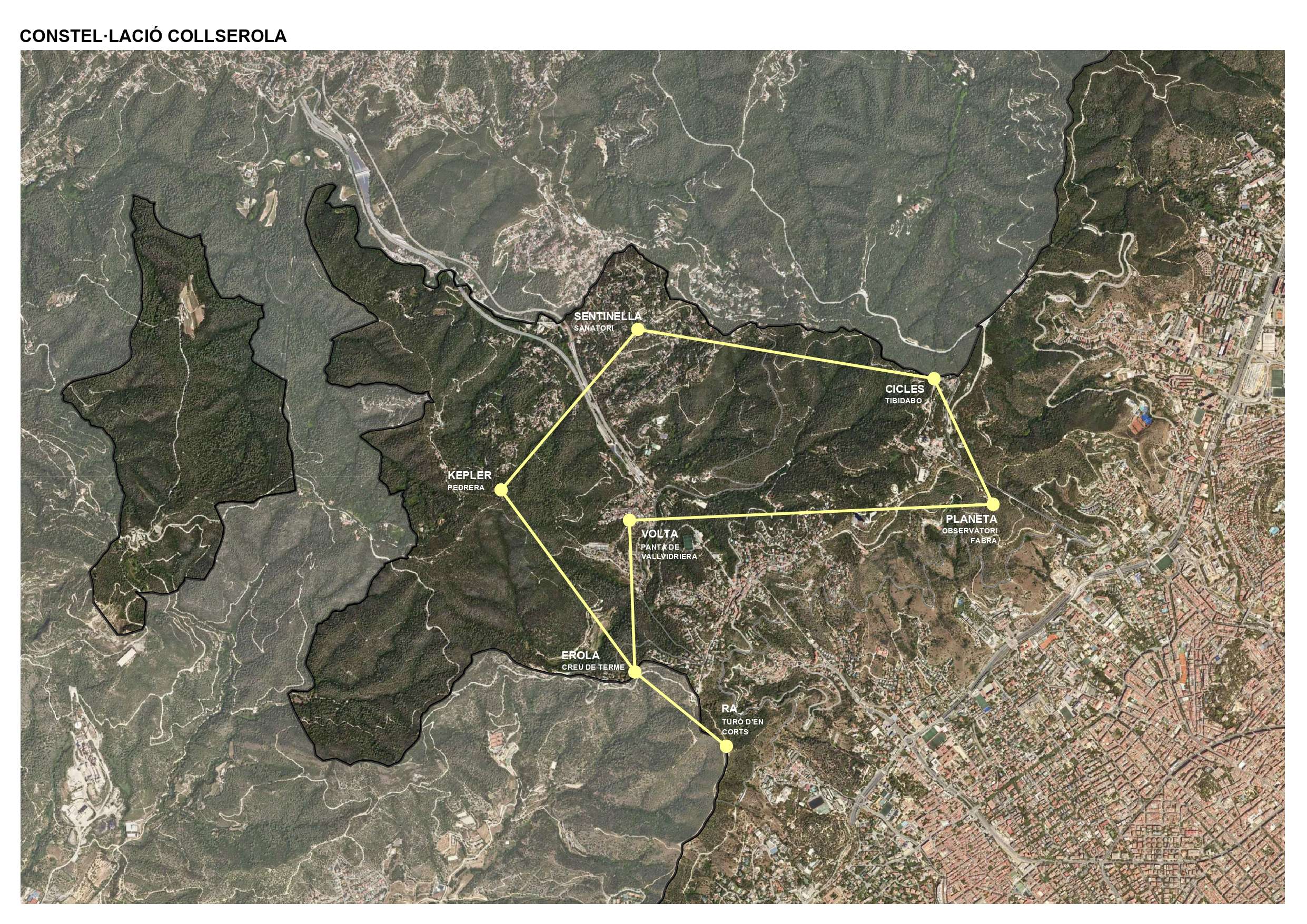 Constel·lació Collserola pretén redefinir els límits entre ciutat i natura, proposant una iniciativa artística, paisatgística i cultural que evoca l'univers i l'esperit dels espais seleccionats. La intervenció harmonitza l'espai urbà amb la tradició i el paisatge natural de Collserola , mitjançant solucions creatives i respectuoses que superen l'espai, fomentant una connexió tècnica profunda amb el territori.