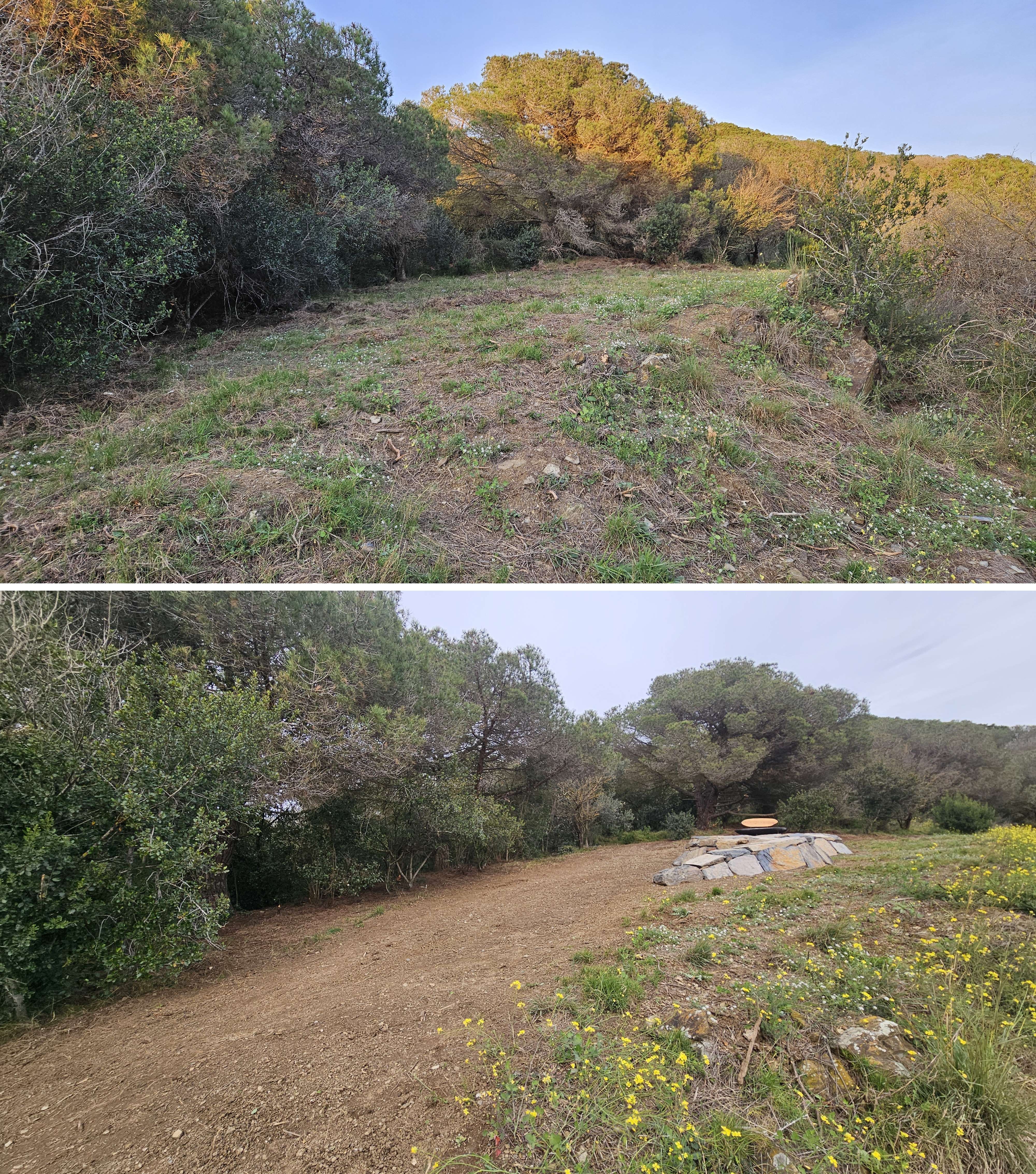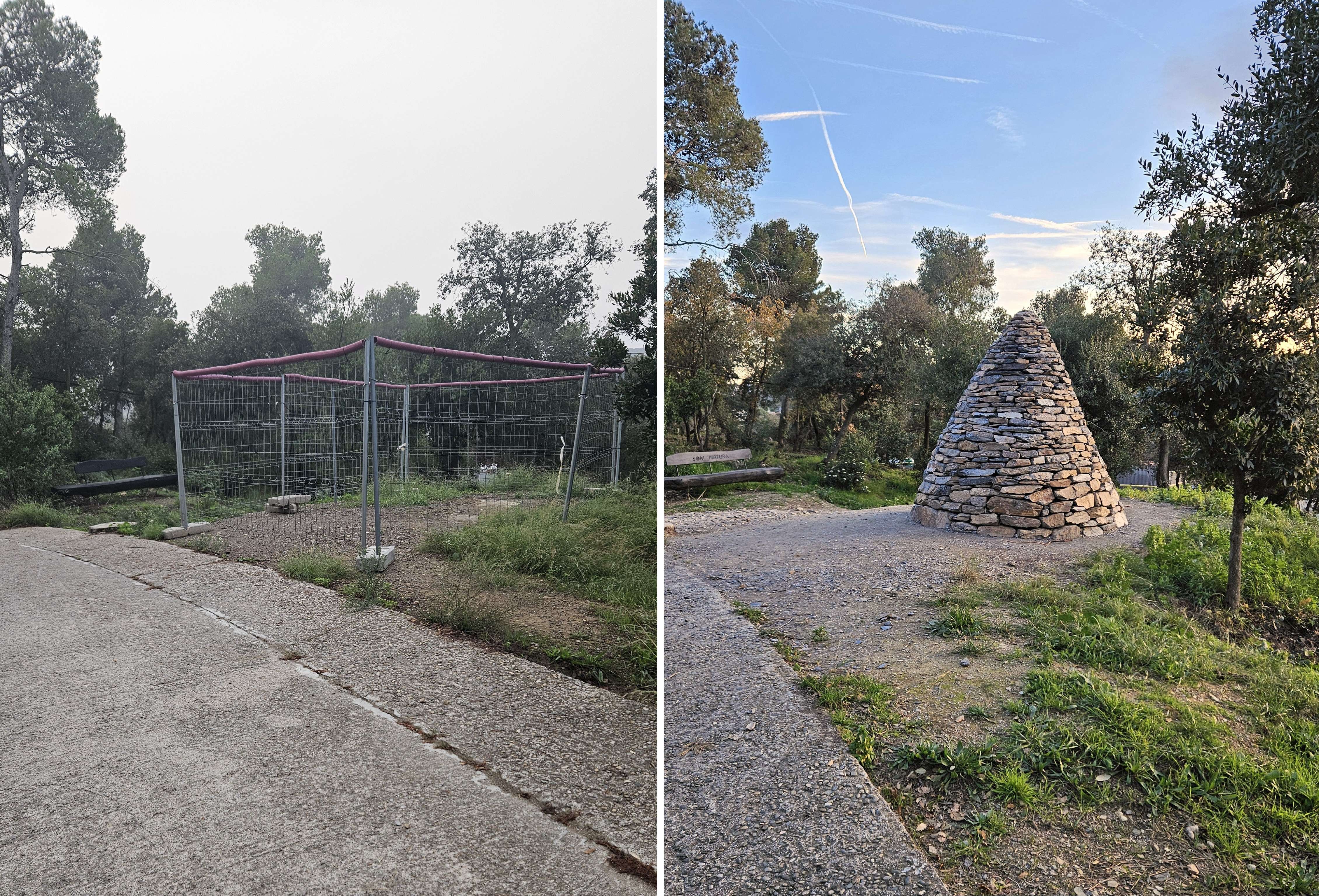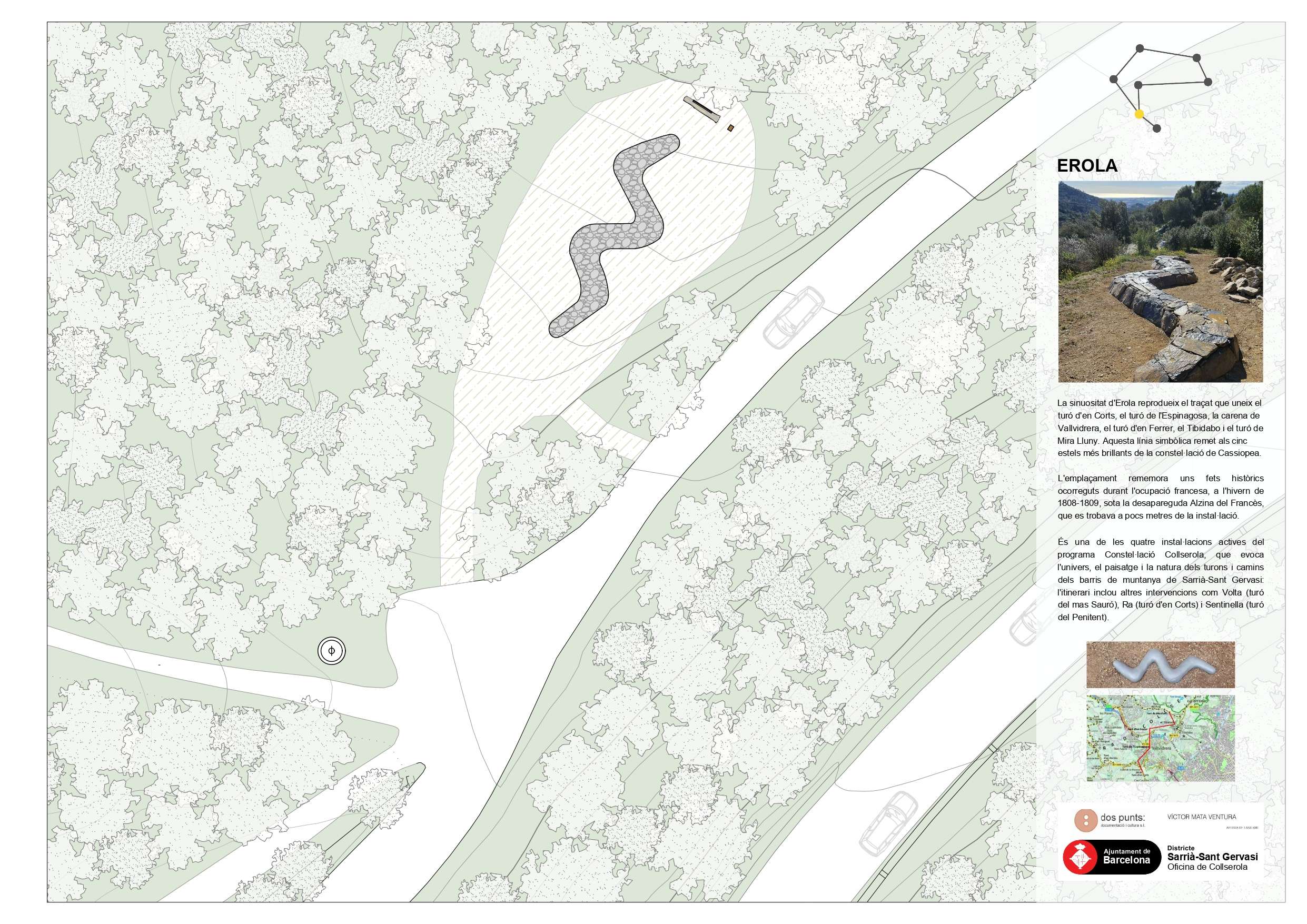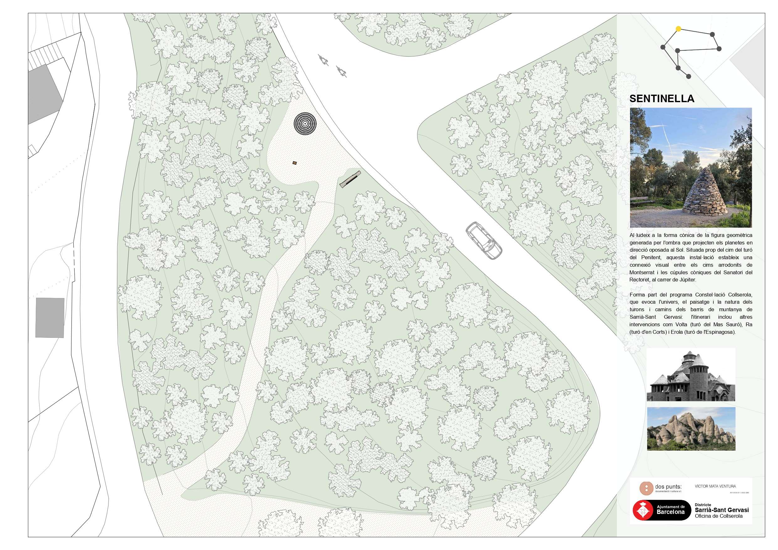 La serra de Collserola, situada al districte de Sarrià-Sant Gervasi de Barcelona, és un conjunt de zones diverses. Algunes estan protegides pel Parc Natural, mentre que altres tenen un caràcter urbà, i sovint és barregen i interactuen, dificultant la definició clara dels límits entre el món natural i l'entorn construït. En aquest context, el projecte es desplega a través de diversos àmbits de paisatge creats, utilitzant tècniques com la pedra en sec, la jardineria i la silvicultura per recuperar els usos tradicionals i proposar estructures artístiques. Aquests espais artialitzats s'integren al territori de manera natural, creant entorns culturals que conviden a la pausa, a l'observació ia la connexió amb el paisatge.