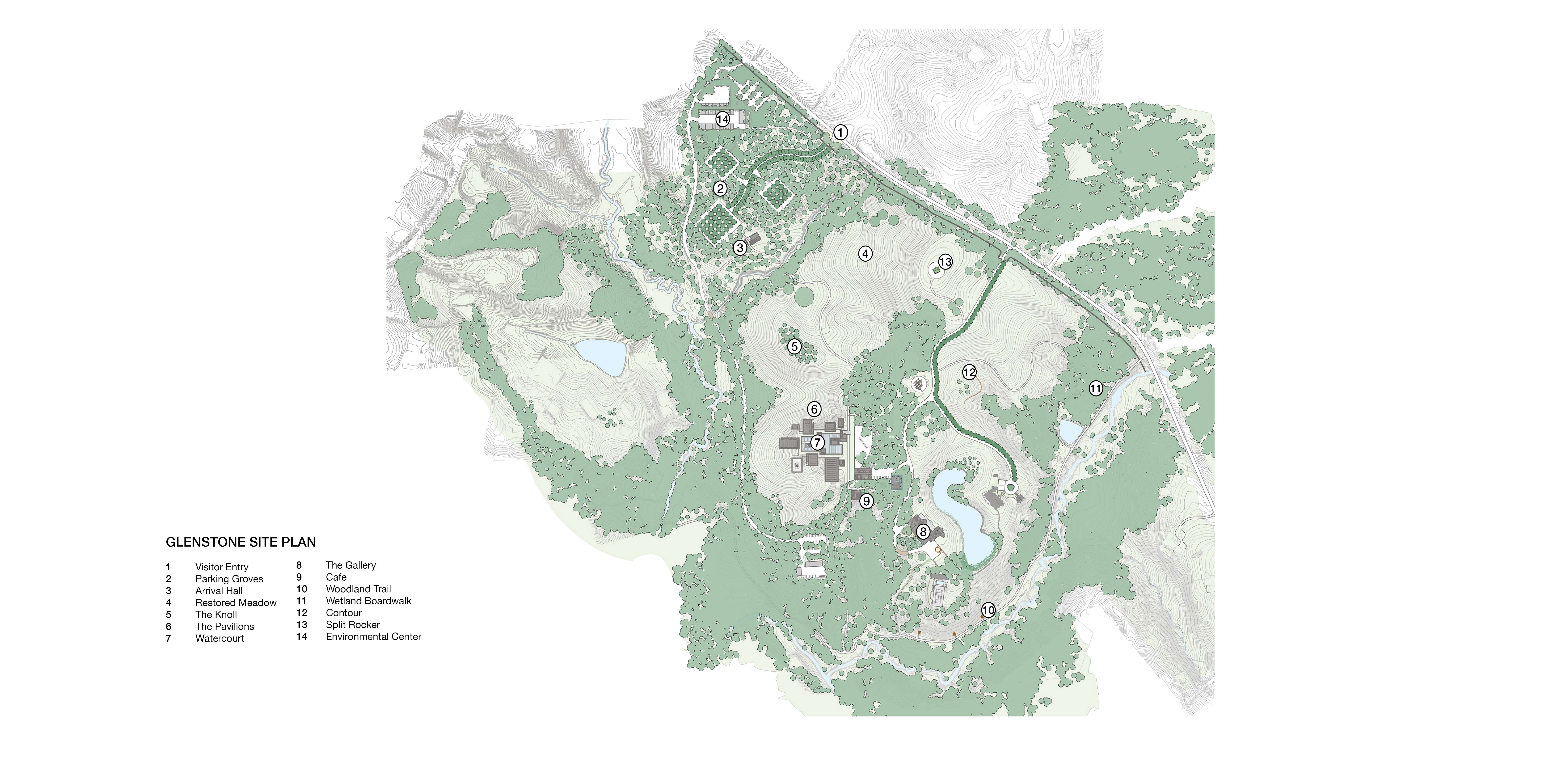 Glenstone is a museum and sculpture park 30 minutes from Washington DC. Glenstone's mission – the seamless integration of art, architecture, and nature – has been achieved through the landscape design that has been realized over the last 20 years. An evolving spatial and sensory journey unfolds as visitors leave their cars in the shade of a constructed native woodland and traverse the landscape on foot. Through physical contact with the land as well as key moments of prospect across it, experience in the ecology of the region is foregrounded alongside world class art and architecture.