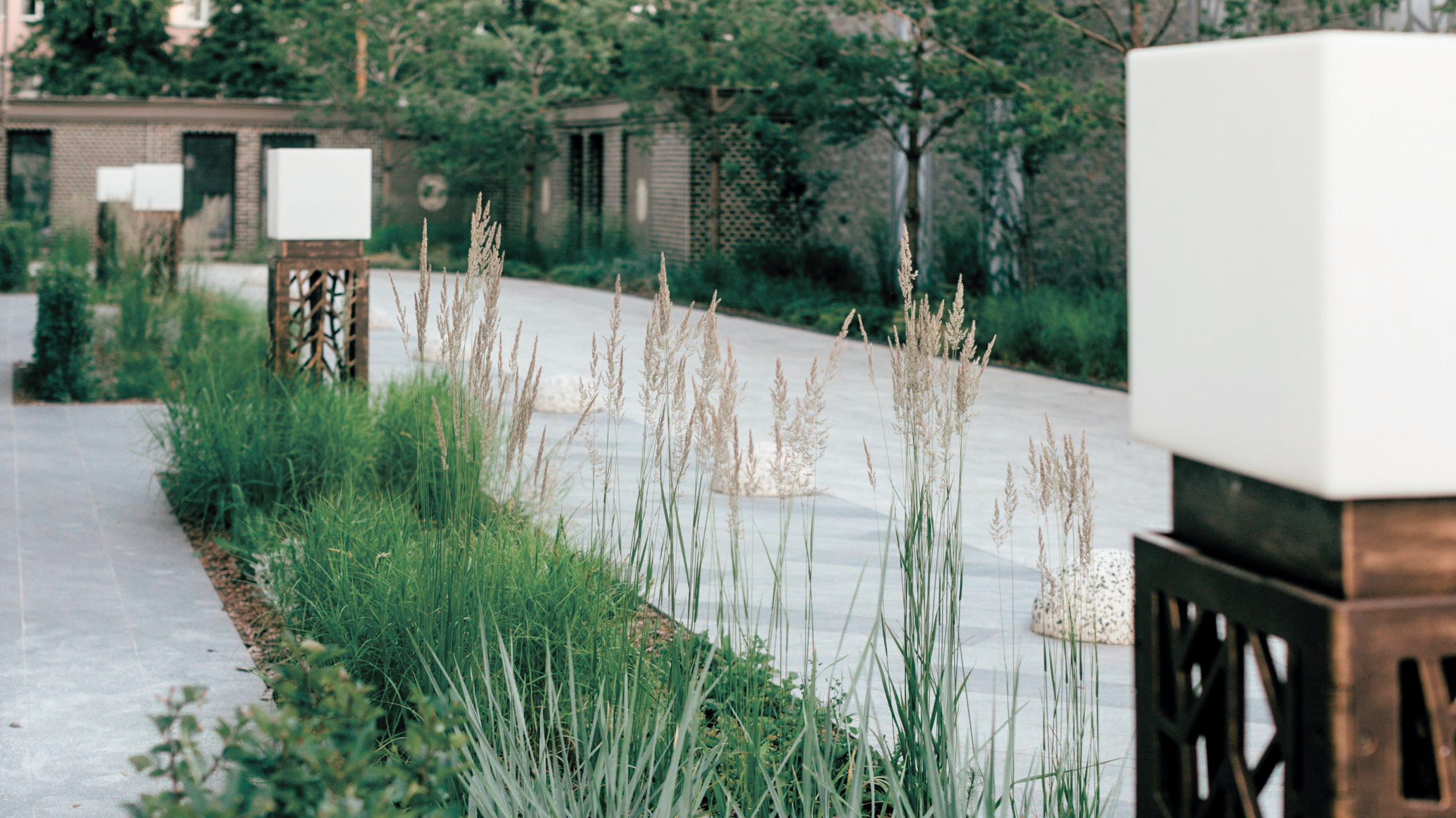 The lighting lanterns and fencing of the territory with the logo of the complex were made according to an individual design by Zelёnka Studio